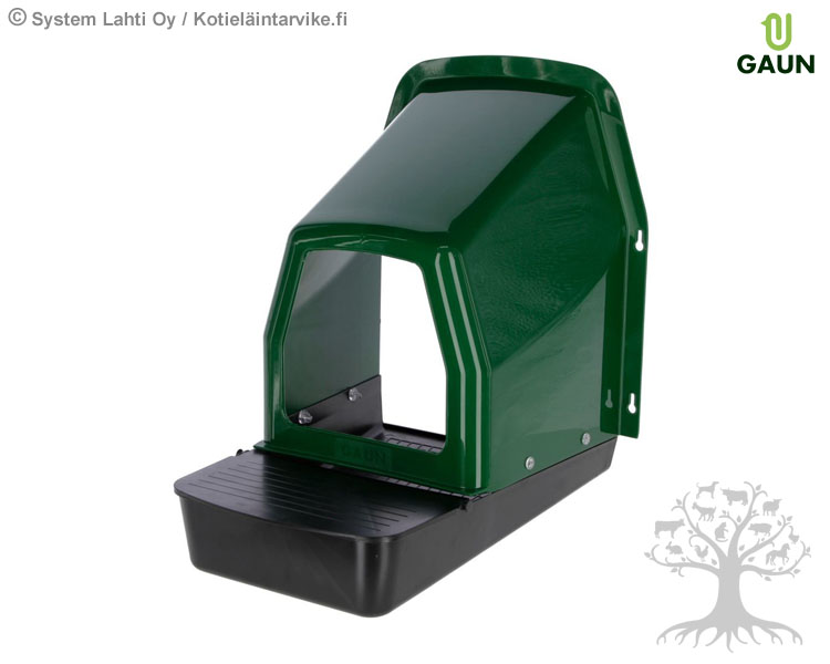 Gaun Laying Nest. The laying nest is a sheltered and weatherproof laying place for chickens. The laying nest is made of plastic. The laying nest is very practical. There is an egg collection box with a lid in front of the laying nest. The eggs roll from the nest to the box. The lid makes easier to collect eggs. Another advantage of the egg collection box is that the eggs do not get dirty into manure or rubbish. The chickens do not get to break the eggs and thus mess up the nest. The laying nest does not have a back wall, but is intended to be attached to a wall. Dimensions when assembled 37x44x49,5cm. Unassembled.