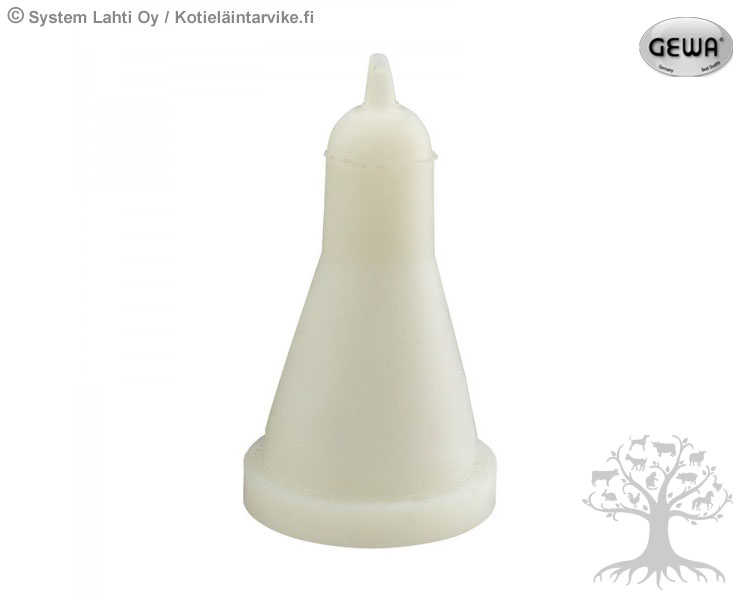 Gewa Teat for Milk Bottle. Spare Teat for Gewa milk bottle 4100. The Teat is very soft and elongated, which makes it ideal for newborn animals such as lambs. By cutting the tip of the teat, you can adjust the flow to suit the animal. Base diameter 3.5cm and height 6cm. Color white. Made in Germany.