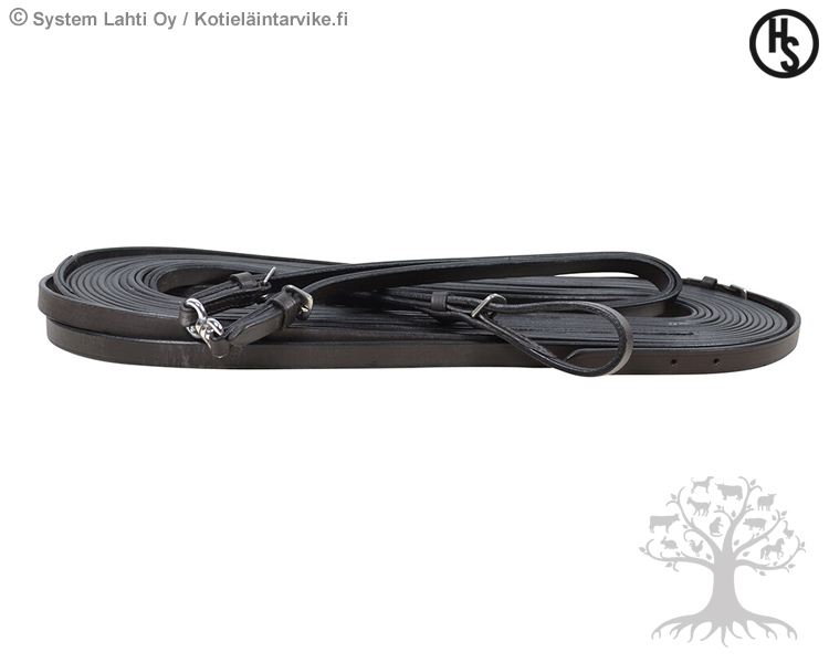 Hansbo Sport Ohjasajo Ohjat Leather. Erittäin laadukkaat nahasta valmistetut ohjasajo-ohjat, ohjien leveys 15 mm, paksuus 4 mm ja pituus 16 m (8+8 m). Ohjien molemmissa päissä on soljet, ja keskellä soljet sekä ohjien kiertymistä ehkäisevä liitos.