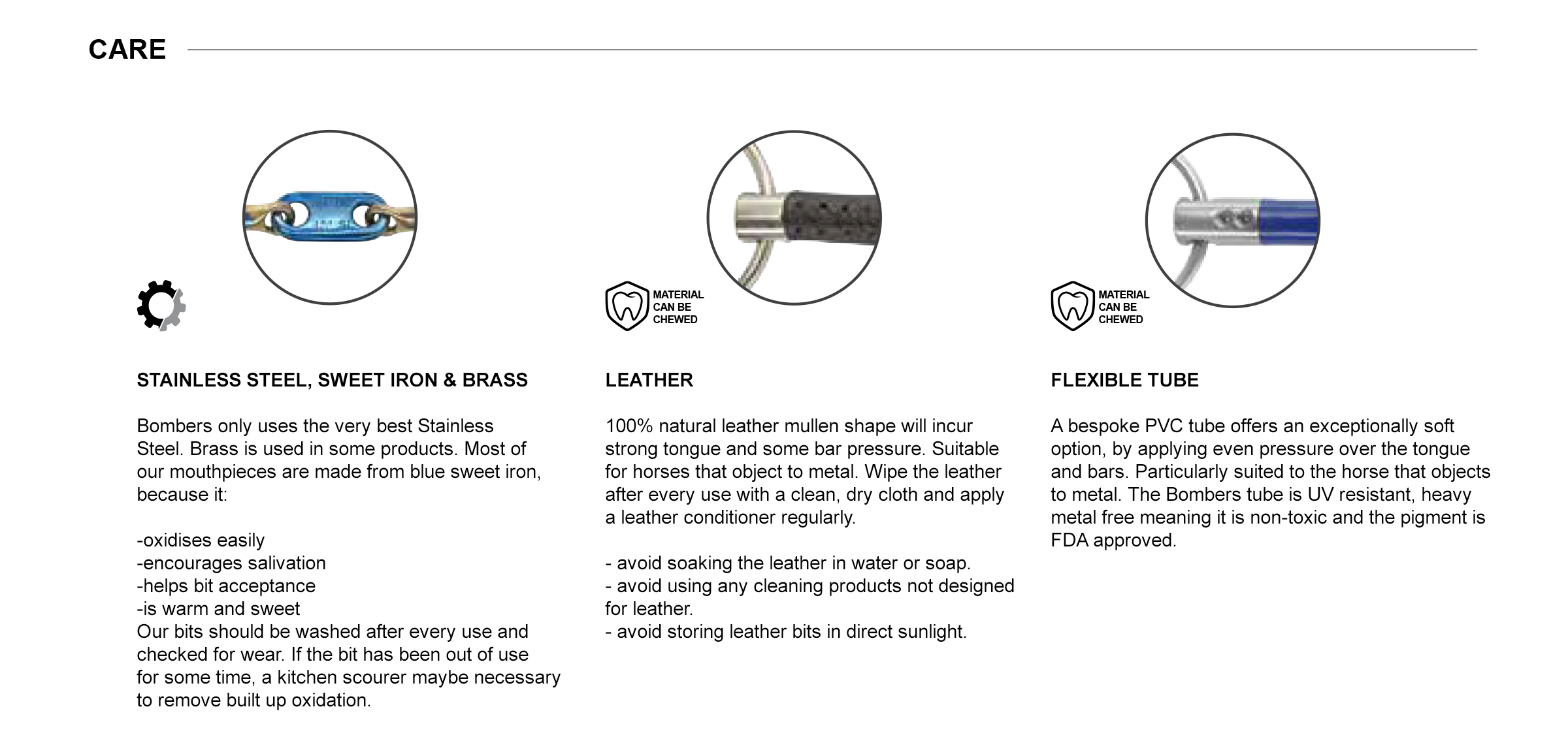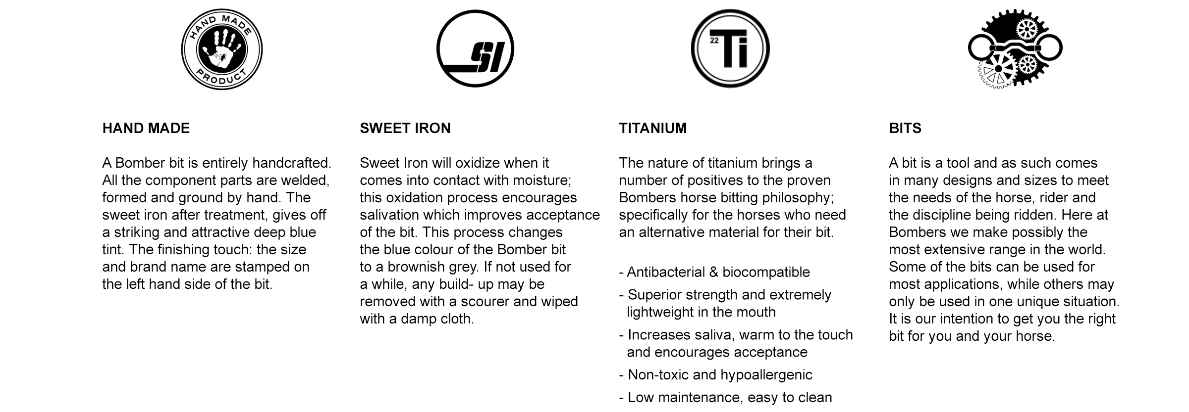 Bombers has been developing quality equine products for over 30 years. Our focus is on providing innovative solutions to riders’ challenging problems, particularly in the area of bitting. Coupling that innovation with handmade quality, attention to detail and testing by world renowned riders, has resulted in world-class horse products... and not just bits. The results are truly astounding, as insistent users attest! This successful formula has now been applied to a variety of disciplines including Cutting & Campdrafting, Dressage, Endurance, Icelandic, Polo, Polocrosse, Pony Showing, Racing, Saddlebred and Show Jumping.