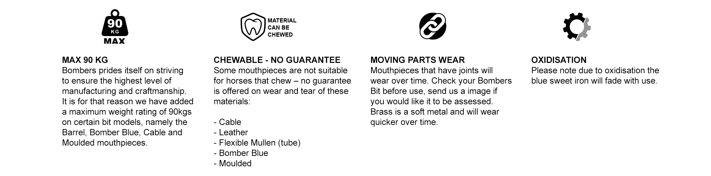 Horse riding is an action sport, the riders safety greatly depends on the integrity of the equipment, bits are hard wearing items but please remember to always check your equipment before saddling up.