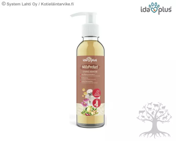 IdaPlus MiteProtect 200ml. The natural plant extracts with high-quality plant extracts and B vitamins. Feed Supplement for Poultry. Developed with biologists. In a practical pump dispenser. Also suitable for chicks, quails and other poultry. Use: after parasite control and in stressful situations. Contents 200ml Bottle.
