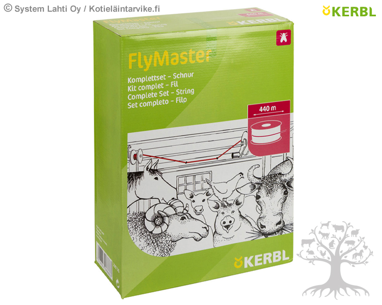 Kerbl Adhesive Cord Complete Set FlyMaster 440m. FlyMaster set includes 440m adhesive Cord and assembly set. Environmentally-friendly alternative for stable fly control. 100 % non-toxic. Roll length 440m. Spent material is rolled onto the empty reel and spare roll can be easily replaced.