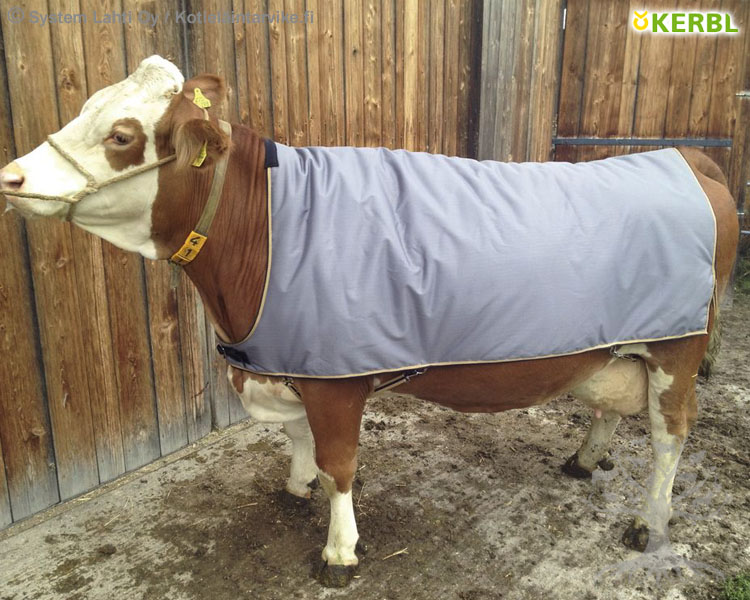 Kerbl Cow Blanket. A warm and well-fitting rug for sick or downer cows. Can also be used as protection in exhibitions. The blanket is tear-resistant, waterproof and dirt-repellent 600 denier polyester. Soft, flexible and adjustable leg loops in the front and back. Waterproof 3000mm. The breathable material prevents excessive sweating (3000g/m2/24h). Machine washable at 30° C. Dimensions: Width 140cm. Available in three lengths: 145cm, 155cm and 175cm. Color: Grey.