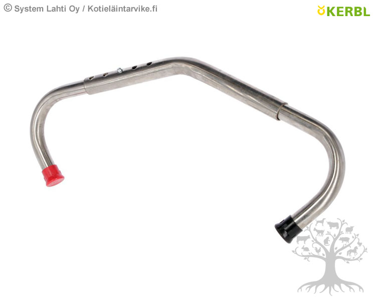 Kerbl Cow Immobiliser Stainless Steel. Immobiliser prevents the cow from kicking. Very durable. A Valuable tool for safe milking, exmination and insemination. Made of 2mm stainless steel tube. Adjustable for different animal sizes. Colored caps marking the long side (Red: Up, Black: Down).
