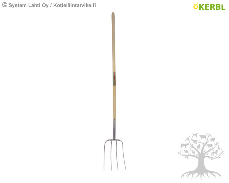 Kerbl Fork 4-tines. Fork is forged from high-quality galvanized steel. The length of the wooden ash handle is 135cm. Fork has 4-tines.