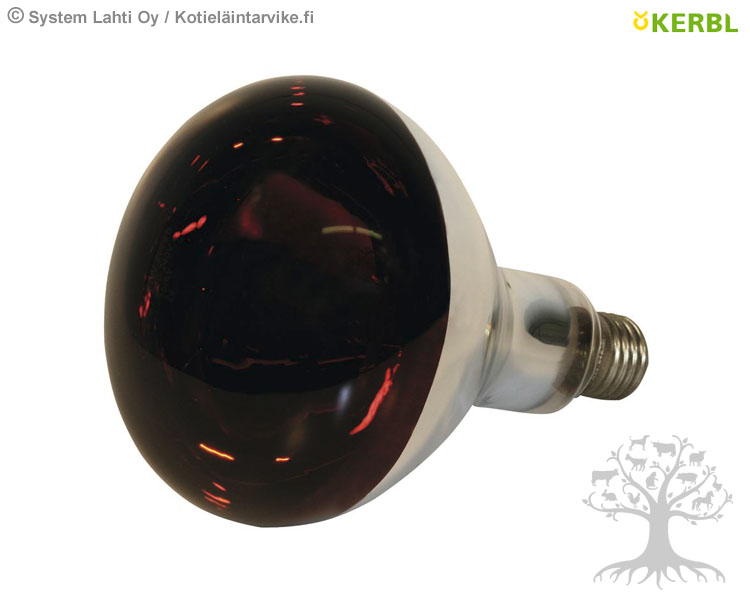 Kerbl Infrared Lamp, Red. High-quality and splash-proof infrared lamp. Excellent glass and reflective surfaces increase heat output. Tempered glass. Light: Red. Operating hours: approx 5000h. Radiation angle 60 degrees. Lamb base E27.
