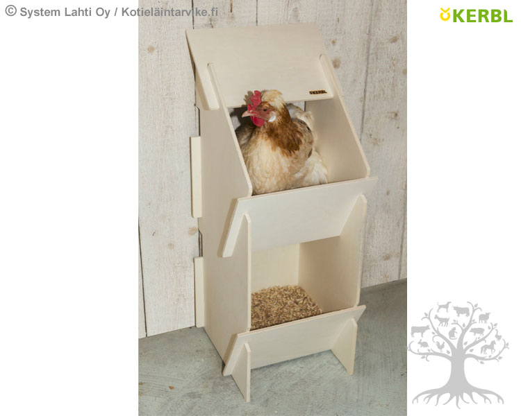 Kerbl Laying Nest Wood For Chickens. Double layer nest for hens. The nest is made of untreated poplar wood. Enough for about ten hens. Easy to install, no tools are required for installation as the nest elements can be easily connected together. Also suitable for heavier chicken breeds (up to 2kg). The laying nest complies with the EU Bio Directives. Dimensions (height x width x depth): 83cm x 30cm x 35cm.