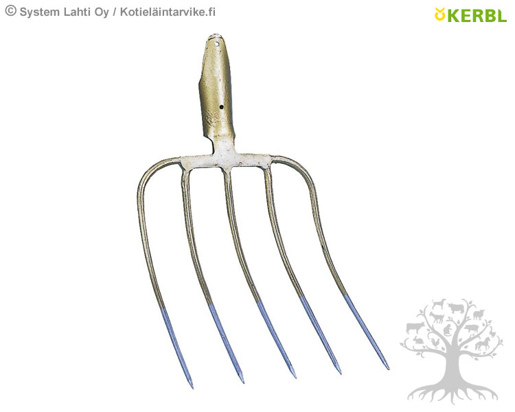 Kerbl Litter Fork 5-tines, 31x24cm. Very high quality and durable 5-tines litter fork. Dimensions 31x24cm. Bracket for handle is ø 38mm. The wooden handle 29581 and 2959 are compatible and sold separately. Fork is hand-forged and hardened.
