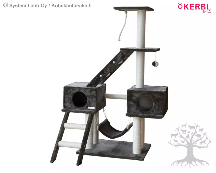 Kerbl Pet Cat Tree Granat. medium-height scratching post with a variety of playing, sleeping and lying options. Very accessible for kittens or senior cats, as the levels are connected by ladders. Very stable thanks to large base plate and solid pillars. Suitable for all breeds of cat.