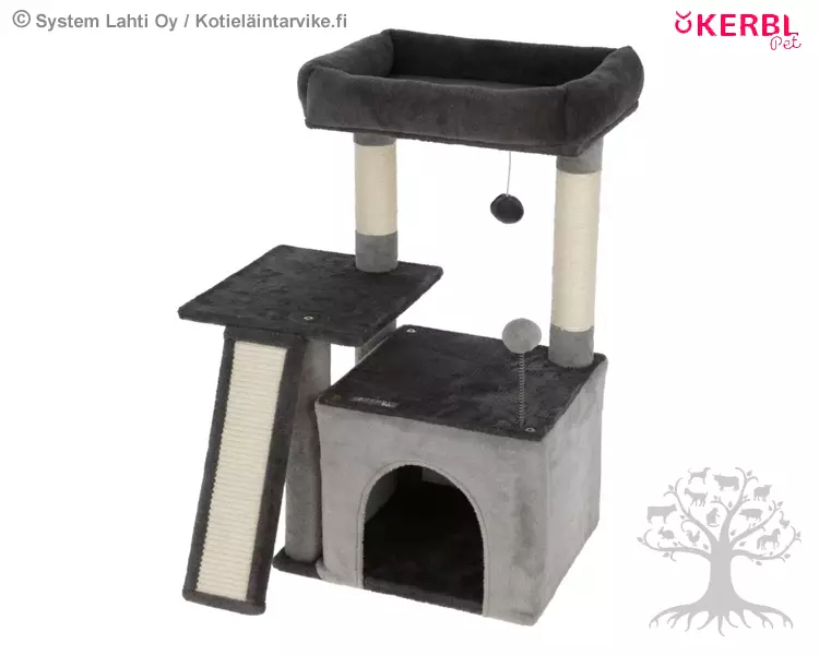 Kerbl Pet Cat Tree Rosalie. The scratching post offers numerous playing, sleeping and scratching opportunities for cats and provides hours of fun and relaxation. Cats can sharpen their claws, hide or relax on the cosy lounger.