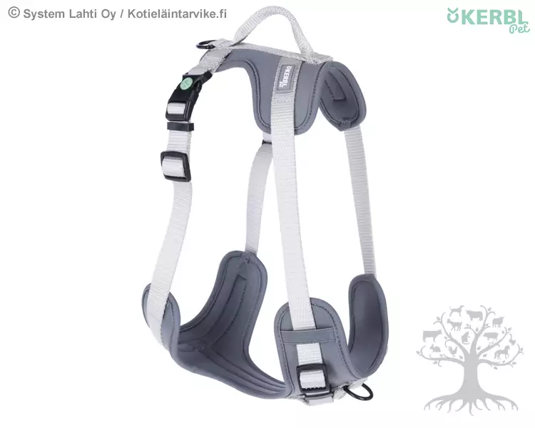 Kerbl Pet Harness Fitty. Sporty Y-harness for dogs. High wearing comfort due to padded inside. Infinitely adjustable neck and chest strap. Hard-wearing due to high-quality nylon strap. Light in weight. With opening to accommodate the short lead. 2 leashing options: chest and back. With clip closure.
