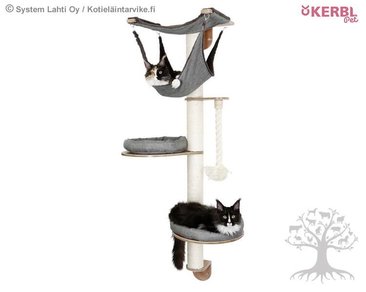 Kerbl Pet Kissan Kiipeilyseinä Dolomit 2.0 Tofana. Dolomit 2.0 Tofana on tyylikäs seinään kiinnitettävä kiipeilyseinä, joka tarjoaa kissallesi niin viihdykettä kuin myös omaa rauhaa. Säästää lattiatilaa, jolloin loisto valinta ahtaisiin tiloihin ja huoneistoihin. Riippumatossa ja ylimmässä makuualustassa on ihanan pehmeä karvavuori. Pylväät sisalnarulla päällystetyt, joihin kissasi saa luvan kanssa teroittaa kynsiään.