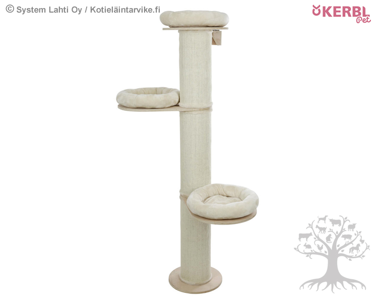 Kerbl Pet Kissan Raapimapuu Dolomit Tower. Yksinkertaisen tyylikäs raapimapuu kolmella pehmeällä petitasolla. Yksinkertaisuudestaan huolimatta raapimapuussa on kaikki, mitä kissa tarvitsee viihtyäkseen. Puun runko on sisalmateriaalilla päällystettyä kiinteää puuta, johon kissan kynnet tarttuu helposti ja siten se on mieluisa kohde raapia ja hoitaa kynsiä. Puun rungolla on kolme pehmeää pesätasoa, joissa on irrotettavat, plyysikankaalla päällystetyt tyynyt. Tyynyt voi pestä pesukoneessa 30 asteessa. Raapimapuu on mahdollista kiinnittää seinään, jotta se olisi vakaampi.