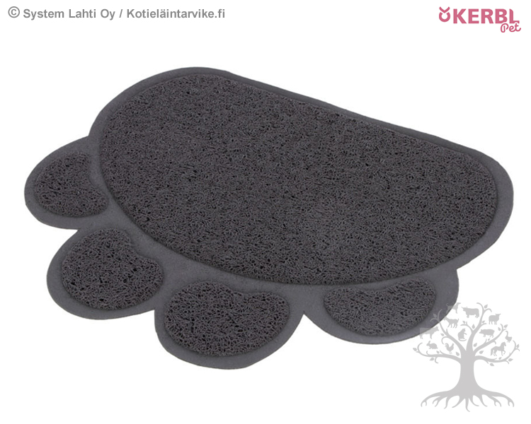 Kerbl Pet Kissanvessan Edusmatto 47x40cm. Laadukas tassunmuotoinen harmaa kissanvessan edusmatto. Maton pinta on valmistettu hyvin hiekkaa sitovasta pehmeästä muovikuiduista. Maton kumimainen "kiekurapinta" kerää erinomaisesti kissan tassuista irtoavan hiekan ja ehkäisee hiekan leviämistä ja auttaa pitämään kissanvessan edustan ja kotisi puhtaampana. Matto on kestävä ja helppo puhdistaa. Ravista tai imuroi hiekka pois, pese käsin haalealla vedellä ja anna kuivua. Matto sopii myös isoille kissanvessoille. Liukumaton pohja pitää maton hyvin paikoillaan.