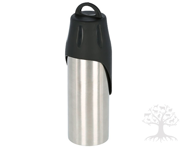 Kerbl Pet Matkajuomapullo 750ml. Kätevä matkajuomapullo lemmikeille. Pullo täytetään vedellä ja se kulkeutuu vaivattomasti mukana esimerkiksi matkoilla, treeneissä ja näyttelyissä. Veden voi tarjoilla missä vain, sillä pullon mukana on muovinen juomakuppi. Pullo on valmistettu ruostumattomasta teräksestä. Pullon koko 750ml.