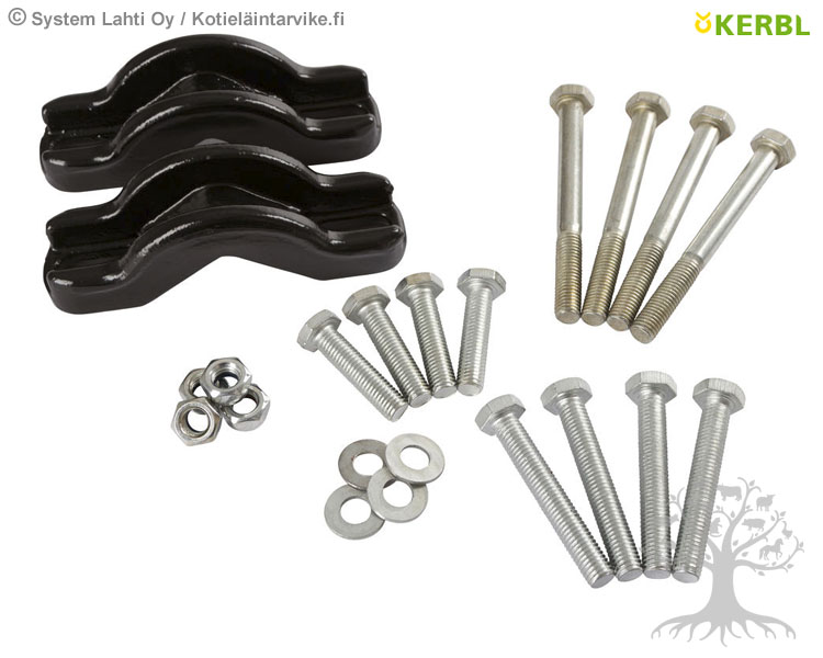 Kerbl Pipe Mounting Brackets. In pairs. Fits drinking bowl H10 (222010), K75 (221875), S30 (222070), HP20 (222055, 222050), SH30 (222065) and P20 (221875). Material: metal, powder-coated.