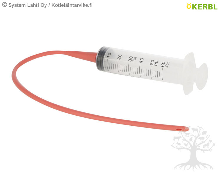 Kerbl Syringe with Probe 60ml. Dispensing liquid feed when the lamb is not eating itself. The set includes a 60ml syringe and a 40cm hose. The hose is flexible. The syringe has a clear scale. A quick and safe way to medicate a lamb.