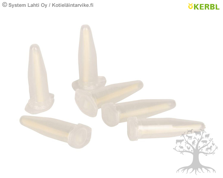 Kerbl Teat Tips 6pcs. The new teat insert is similar to the naturally occurring sebum and therefore, according to scientific tests which have been carried out, does not damage the teat canal. The wax-like consistency adapts to the teat canal. Does not contain drugs and there is no waiting time. Color: White. Package size: 6pcs.
