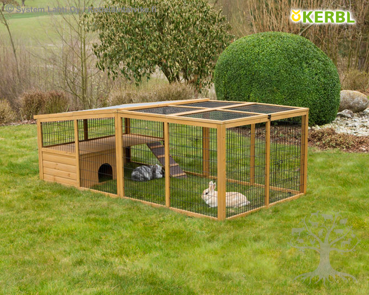 Kerbl Ulkohäkki Kaneille 220x115x75cm. Korkealaatuinen ulkohäkki pesämökillä ja näköalatasanteella. Kokonaan suljettava katto pitää kutsumattomat vieraat poissa. Saranoilla oleva kaksiosainen katto on helposti avattavissa, katon toinen osa on kiinteää aaltoilevaa muovikattoa, joka suojaa sateelta ja auringolta. Häkin sisäpuolella alareunassa kulkee n. 10cm leveä kaistale sinkittyä metalliverkkoa, jonka tarkoituksena on estää kaivautumista häkistä pois. Häkin sivuilla ovet 2kpl. Helppo puhdistaa. Valmistettu laadukkaasta kuusesta (Picea asperata), puuosat lasitettu suojaavalla puuvärillä, verkko-osat sinkittyjä. Pesämökin ja näköalatasanteen käyttöiän pidentämiseksi suosittelemme käsittelemään nämä puuosat sopivalla maalilla, lakalla tai puuöljyllä.