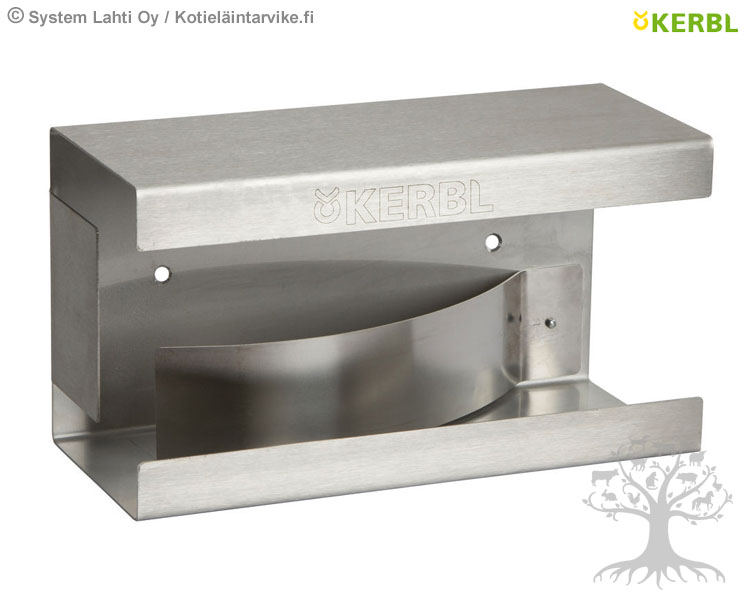 Kerbl Wall bracket for glove box. Made of stainless steel. Suitable for example a milking station. Can be mounted horizontally or vertically. Fastening with screws. When mounted horizontally on the rack, multi-sized boxes fit because the spring pushes the dispenser box to the front. Dimensions: 13.2cm x 10.3cm x 24.8cm.