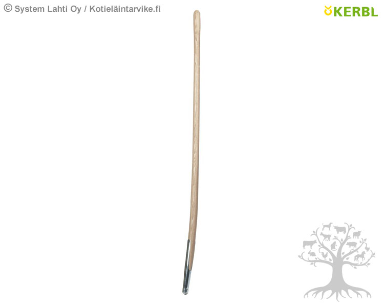 Kerbl Wooden Handle 29591, 135cm. Diameter 36mm and lenght 135cm. Bent and painted wooden handle with metal reinforcement/holder. Material: Painted ash wood. Suitable handle for manure and hay forks.