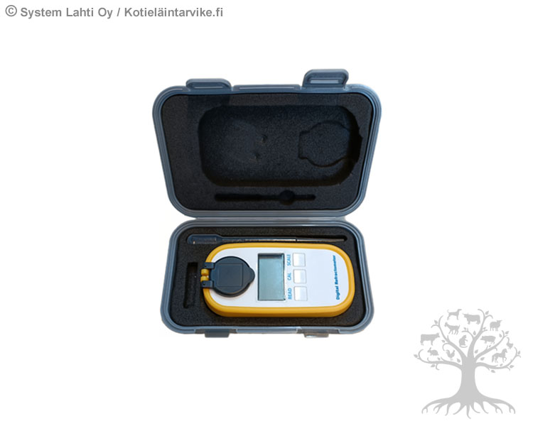LAC Digital Brix Meter. The colostrum quality meter has a digital brix% scale that indicates the antibody content of colostrum. Colostrum consists of lactose, fat and protein, which make up the amount of solids to be measured. The quality of colostrum is influenced by many factors and there are large differences in quality. The Brix measurement range is 0-50% with an accuracy of ± 0.2%. The result is compared with the table. The resolution of the display is 0.1%. Temperature measurement range is 0-40°C with an accuracy of ± 0.5°C. The instrument is supplied in a case with pipette, protective cover and battery (AAA). 12 months warranty.