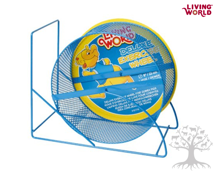 Living World Juoksupyörä 23cm Large. Erityisesti marsuille ja rotille koonsa puolesta sopiva juoksupyörä. Juoksupyörän metalliverkko on tiheä- ja pienireikäistä, joten se on turvallisempi kuin perinteiset juoksupyörät, joissa on isot pinnavälit. Lisäksi siinä on hyvin suunniteltu, tukeva jalusta, ettei lemmikki juutu kiinni telineen ja pyörän väliin.
