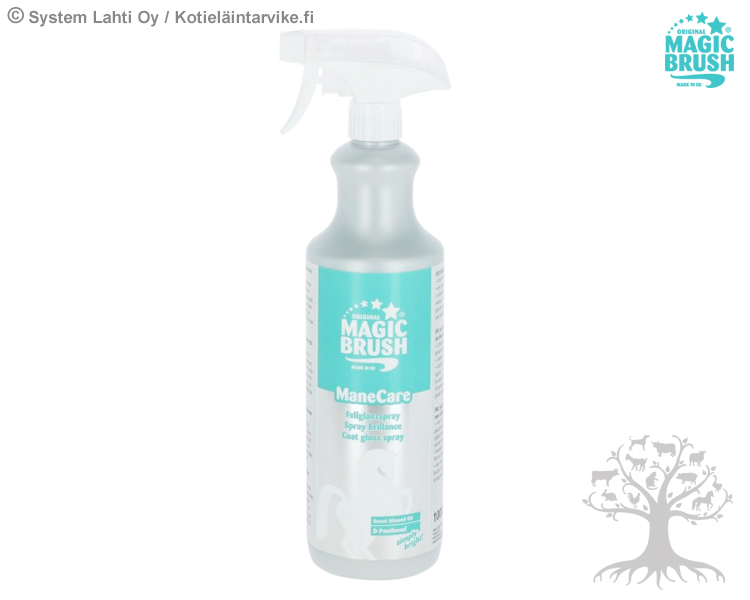 MagicBrush Kiiltosuihke ManeCare. Laadukas karvan ja jouhien kiillotus-, hoito- ja selvityssuihke hevosille. Hoitosuihke tekee karvasta kiiltävän ja helppohoitoisen. Tekee pitkistäkin jouhista helposti kammattavan. Kosteuttava aine (D-pantenoli) suojaa ihoa ja karvaa kuivumiselta. D-pantenoli suojaa myös vaurioitunutta ihoa. Sisältää manteliöljyä jolla on karvaa hoitava vaikutus. Miellyttävä tuoksu.