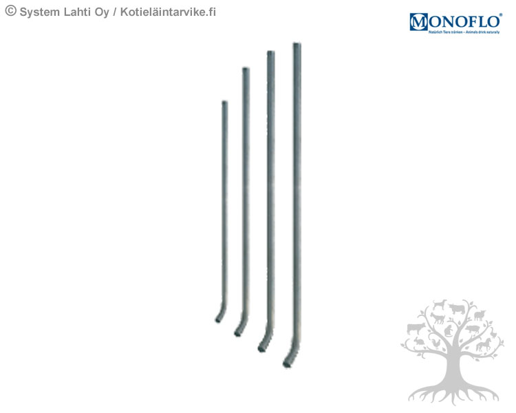 Monoflo Water Pipe 1/2" Bend 30°. Top end has a 1/2" male thread and the bottom end has a 1/2" female thread. Water pipe´s bottom end is bend 30°. Stainless steel. Available lengths 380mm, 500mm, 760mm and 1000mm.