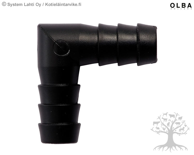 Olba Elbow Connector 10x10mm. Elbow connector 10x10mm suitable for Olba drinking system. The connector fits Olba water hose 9mm (S9Z-10). Made of high quality and durable plastic ABS.