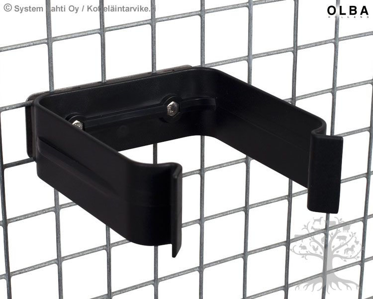 Olba Mesh Bracket Natural. High quality and durable mesh bracket for drinker suitable for chicks and rabbits. The drinker can be attached to both sides of the net or cage. Plastic (ABS) bracket with stainless steel mounting plate SS. By pushing the drinker into the plastic part the drinker snaps into it. Very convenient and easy to use. Does not include a drinker, available separately (DFK05KU, DFK10 and DFK10KU). Color: Black.