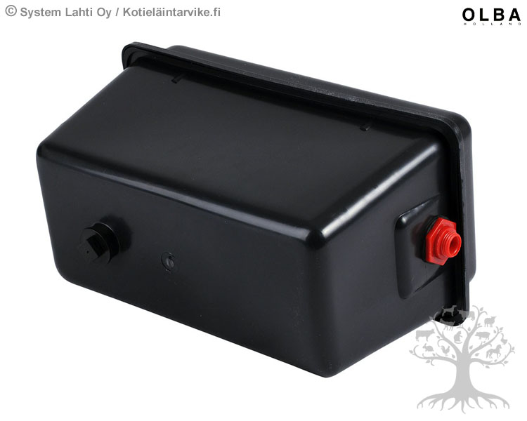 Olba Water Tank 8L. Olba Water tank suitable for Olba drinking system. Water tank has float valve and lid. Water tank is needed to lower the water pressure. Color: Black. Capacity: 8L.