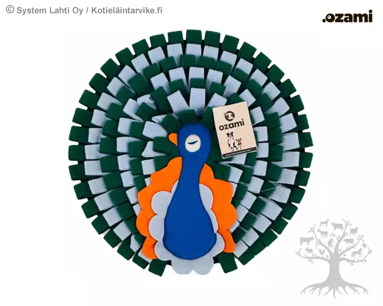 Ozami Kätkömatto Riikinkukko 40cm. Pyöreä ja värikäs kätkö-/nuuskumatto, joka edistää koiran luonnollista etsintäkäyttäytymistä. Tutustu lisää..