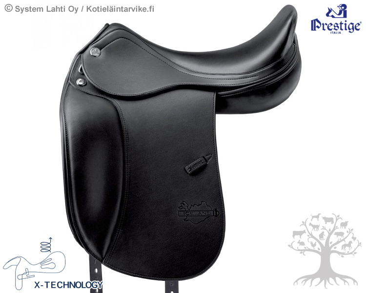 Prestige Koulusatula X-D1 SC D (Iceland). X-D1 SC (Iceland) on yksi suosituimpia Prestigen koulusatuloita, joka on rungoltaan ja ominaisuuksiltaan sama kuin Prestigen koulusatula X-D1 Zero, mutta siinä on laakeampi istuin ja kulmikas takakaari. X-D1 SC -satulassa on ainutlaatuinen "Shoulder Free" -lapavapaus, joustava runko ja joustolliset etuvastinhihnat, jotka tarjoavat hevoselle maksimaalisen liikkumavapauden. X-D1 SC -satulassa on käytetty Prestigen uusinta X-teknologiaa, jonka ansiosta satula pystyy tarjoamaan uudensukupolven lyhytrunkoisille ja -selkäisille sekä isolapaisille ja -liikkeisille poneille ja hevosille erinomaisen liikkumavapauden ja ratsastajalle parhaan mahdollisen istuinmukavuuden.