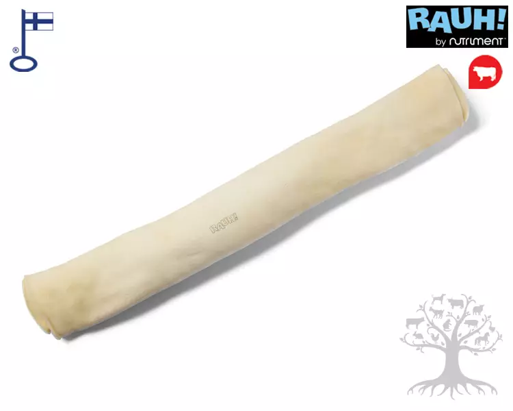 RAUH! Beef XL. Suomalaisesta naudannahasta valmistettu koiran puruluu. Naudannahkaluista suurin ja kestävin on suunnattu erityisesti suurille koiraroduille. Kestävän naudannahkarullan pureskelussa riittää tekemistä pitkäksi aikaa. Perinteisellä kuivausmenetelmällä valmistettu puruluu on bakterologisesti puhdas, tutkittu ja turvallinen koiran herkku. Puruluun pureskelu poistaa hammaskiveä koiran hampaista ja ehkäisee ientulehdusta. Puruluu on maistuva ja herkullinen ajanviete koiralle. Puruluu on myös kevyt herkku sen alhaisen energiapitoisuuden vuoksi.