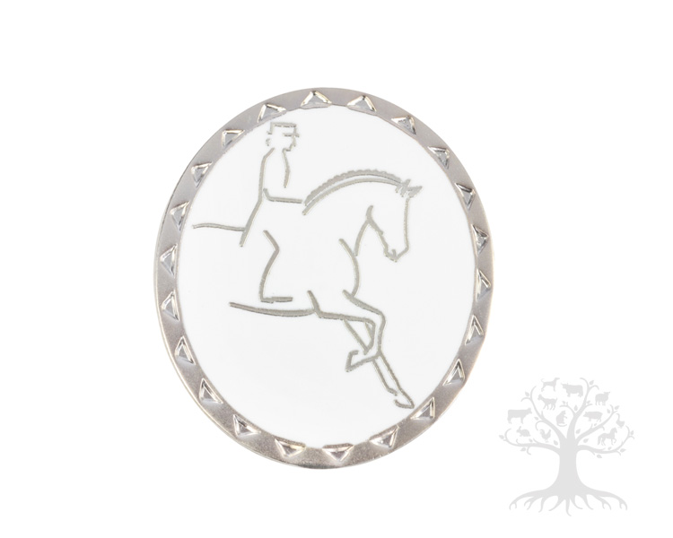 Rubin Ross Plastronneula Dressage Rider Matt Silver. Ylellinen pyöreä plastronneula. Ei sisällä nikkeliä. Neulan halkaisija 2,5cm.
