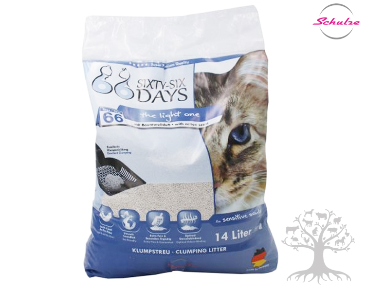 Schulze Kissanhiekka 66 Days 14L . Erittäin laadukas, ultrakevyt ja kertakaikkiaan mahtavalla imukyvyllä varustettu kissanhiekka! Tutustu lisää..
