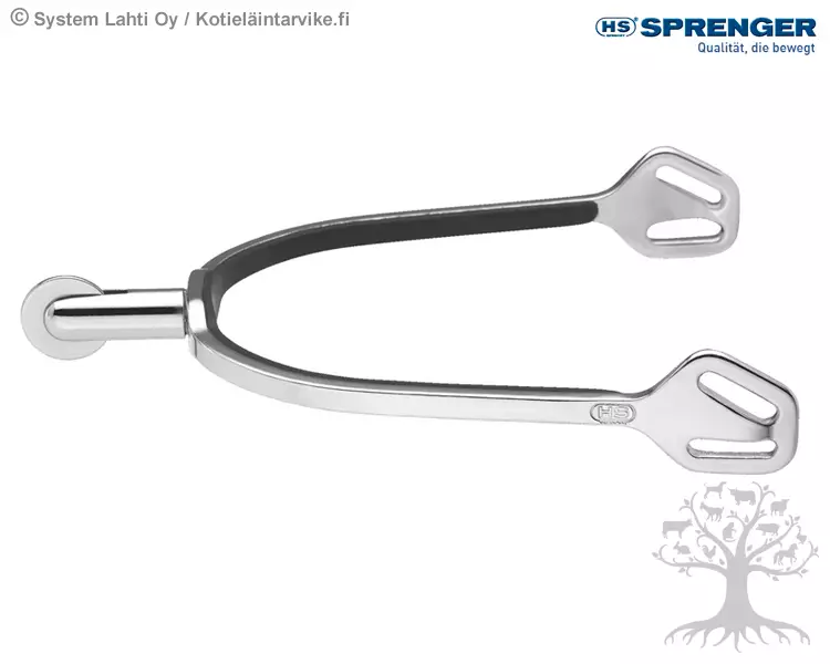 Sprenger SlimLine Levyrissat BootProtect Round. Sprengerin erittäin laadukkaat ja kestävät kannukset levyrissoilla ja pyöristetyillä kannusvarren päillä sekä integroidulla BootProtect kannuskumeilla. BootProtect kannuskumi suojaa saappaan/kengän pintaa sekä pitää kannuksen hyvin paikoillaan. Slimline kannukset ovat malliltaan perinteistä kannusta sirommat. Kannukset on valmistettu korkealaatuisesta ruostumattomasta teräksestä. Ainutlaatuisesti muotoillut kannusremmien Ultra Fit Balkenhol -kiinnitysreiät pitävät kannukset hyvin paikoillaan (katso kuva). Unisex-malli. Valmistettu Saksassa