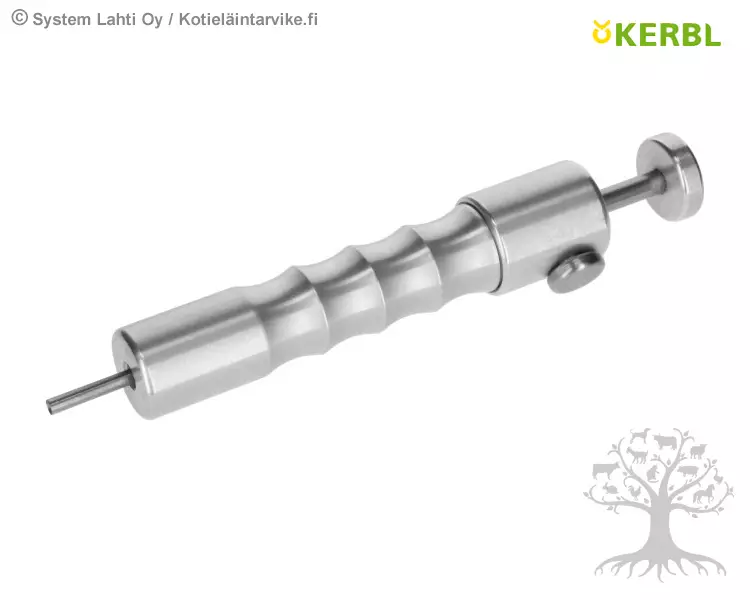 Kerbl Stunner for Small Animals. Small animals can be reliably stunned before slaughter using the shooting apparatus. No ammunition is required as the device works using spring bolt technology. Bolt exit length: approx. 27 mm. Shot energy: approx. 7.5 joules. Bolt diameter: 4.9 mm. Housing made of high-quality aluminium with ergonomic handle. Firing bolts made from rust-proof stainless steel. Weight: 365g. Length: 225mm and Ø 34 mm.