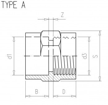 | Tuotekoodi | d1 | d3 | Z | B | D | S | PN |