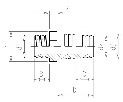 | Tuotekoodi | d1 | d2 | d3 | Z | B | C | D | S |