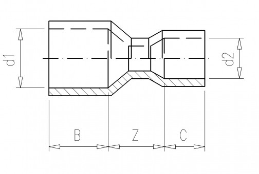 Supistusmuhvin mitat (katso mittatiedot kuvasta):