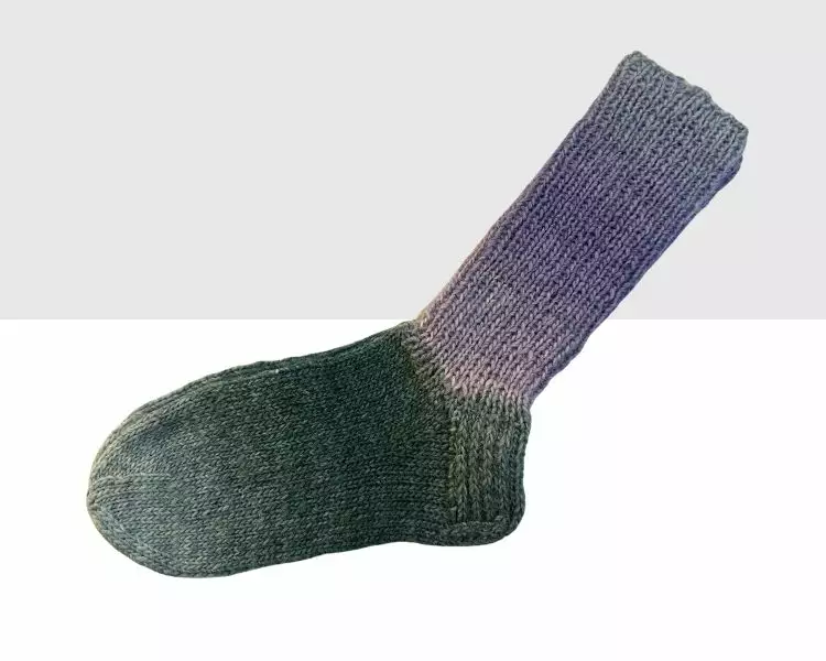Mumman Villa & Sukka Villasukka Liukuväri Vihreä/Lila. Kotimaiset käsintehdyt villasukat. Laadukkaat ja lämpimät villasukat vahvistetulla kantapäällä.