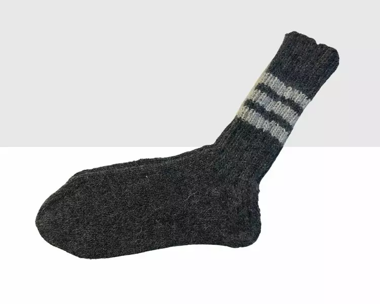 Mumman Villa & Sukka Villasukka Tummanharmaa Alpakka. Kotimaiset käsintehdyt villasukat. Laadukkaat ja lämpimät villasukat vahvistetulla kantapäällä.