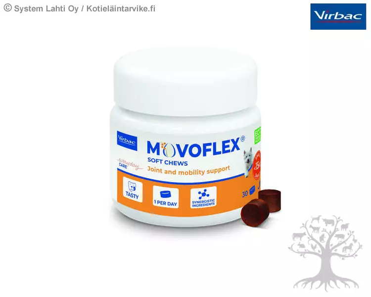 Virbac Movoflex 2g S, pienille koirille alle 15 kg. Movoflex sisältää ainutlaatuisen koostumuksen avainainesosia, jotka auttavat ylläpitämään nivelten terveyttä ja liikkuvuutta kaikenikäisillä koirilla.