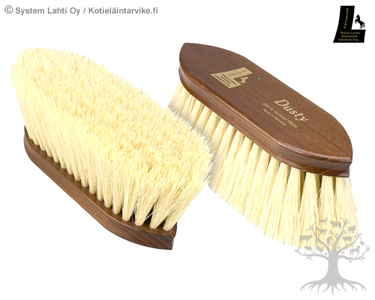 William Leistner Dusty 4h97R. William Leistnerin Dusty on aidoista luonnonkuiduista valmistettu puolipehmeä pölyharja. Harjakset on valmistettu puolipehmeistä 100%:sta meksikolaisesta Tampico -luonnonkuiduista. Pölyharjan pitkät (65mm) harjakset irrottaa tehokkaasti likaa, irtokarvaa ja hienompaakin pölyä, joten se sopii erinomaisesti ns. yleispölyharjaksi. Luonnonmateriaaleista valmistetut harjat eivät muodosta karvaan sähköstaattista varausta. Made in Germany - Valmistettu Saksassa!