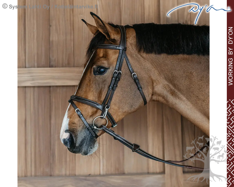 The hallmark of this collection is its beauty: Working by Dyon items are finished with cream-coloured thread (except dressage bridles are finished with leather coloured thread) and stainless steel buckles. Working by Dyon Collection is made of buffalo leather for sturdiness and strength. Buffalo leather is produced by vegetable tanning. The Working by Dy’on collection focuses on the basics, offering classic models for each sport: jumping, dressage and leisure riding. Working by Dyon collection is functional, combining Dy’on quality and lower cost. As its name indicates, this collection is designed mainly for daily work.