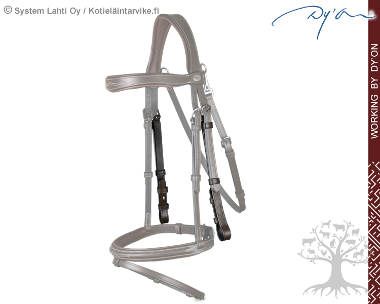 Working by Dyon Cheekpieces Standard. Dyon's quality cheekpieces with cream-coloured thread and stainless steel buckles. Suitable for a use with Working by Dyon bridles.