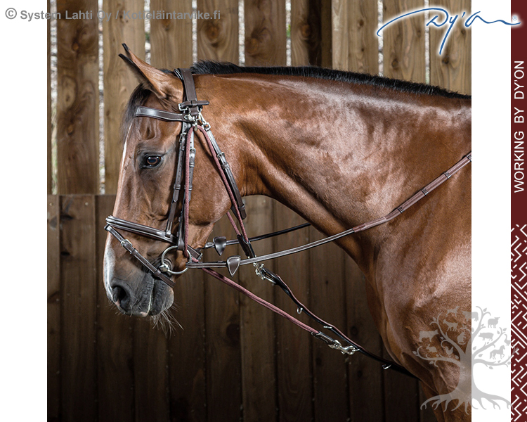 The hallmark of this collection is its beauty: Working by Dyon items are finished with cream-coloured thread (except dressage bridles are finished with leather coloured thread) and stainless steel buckles. Working by Dyon Collection is made of buffalo leather for sturdiness and strength. Buffalo leather is produced by vegetable tanning. The Working by Dy’on collection focuses on the basics, offering classic models for each sport: jumping, dressage and leisure riding. Working by Dyon collection is functional, combining Dy’on quality and lower cost. As its name indicates, this collection is designed mainly for daily work.